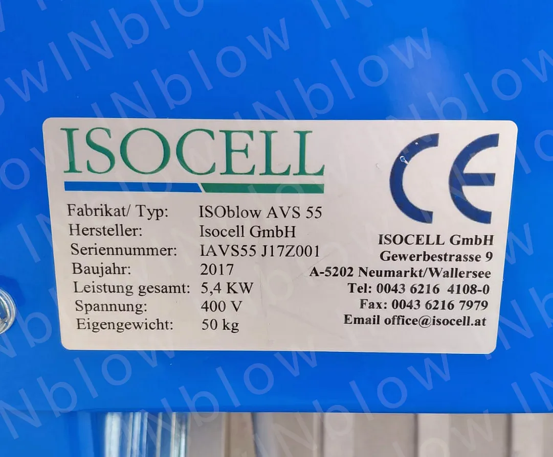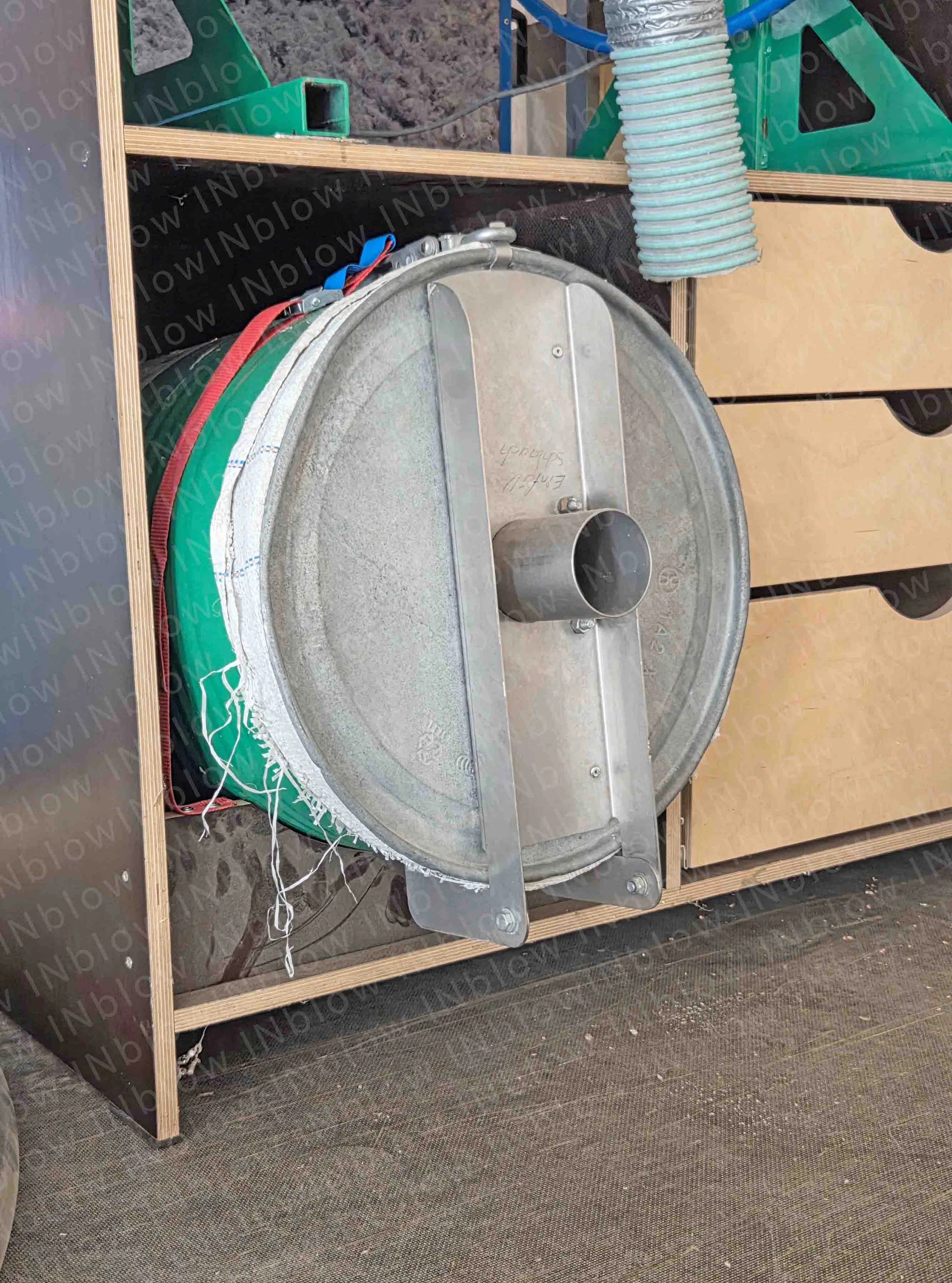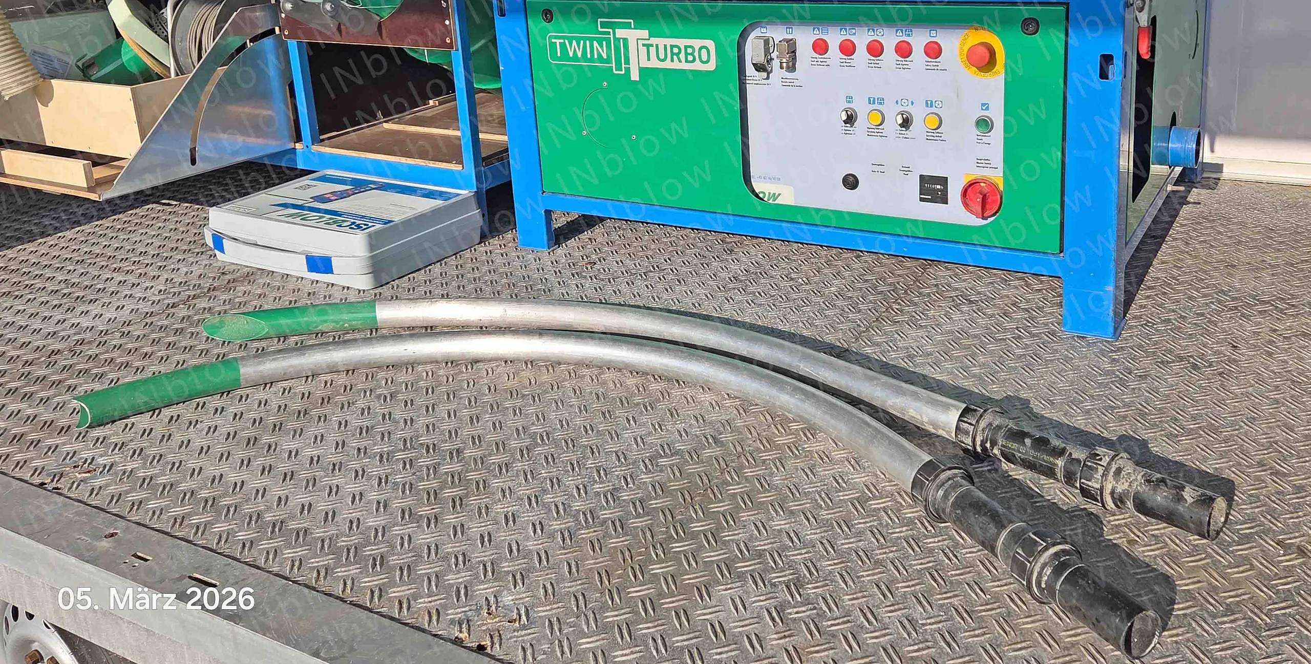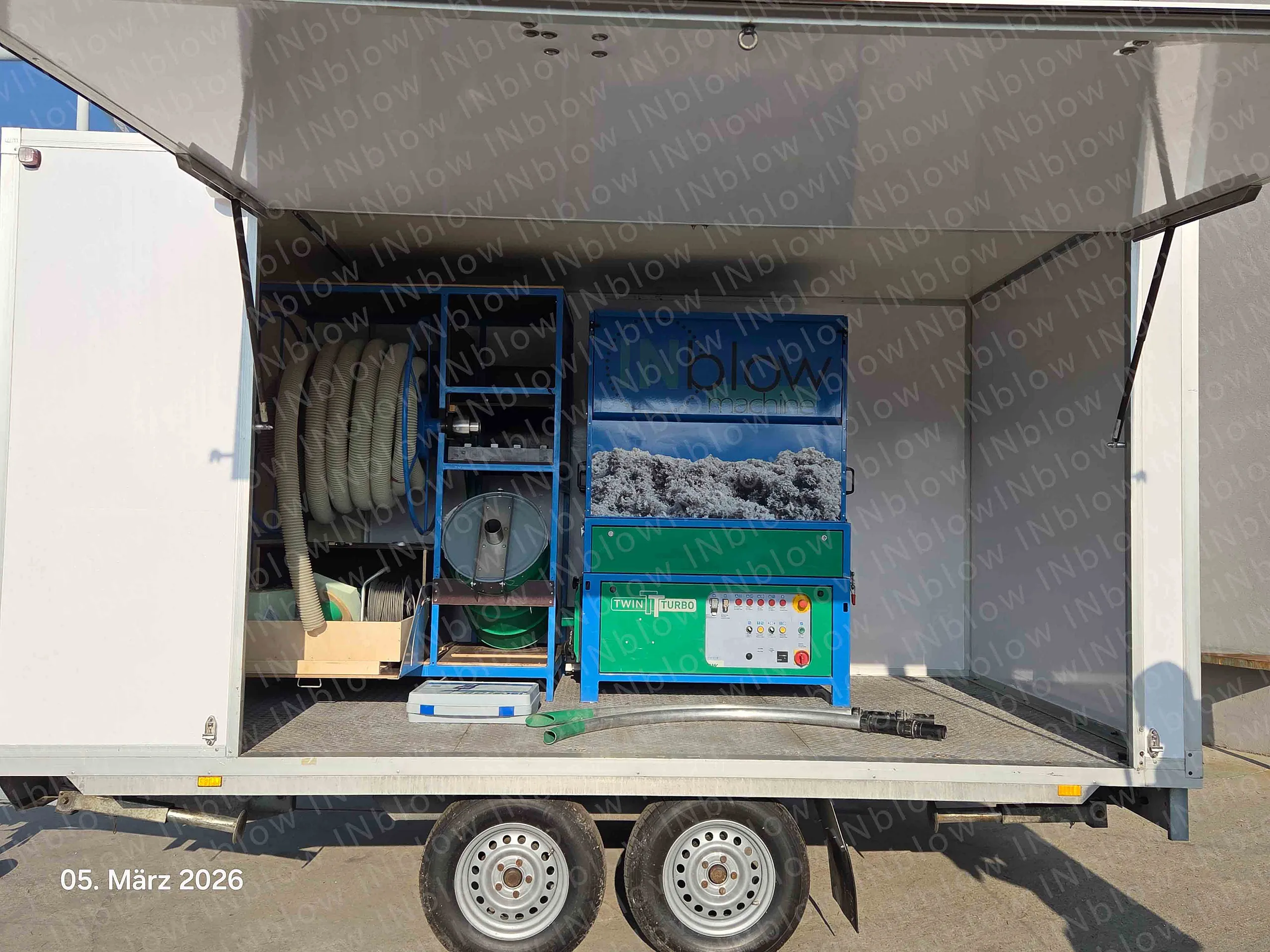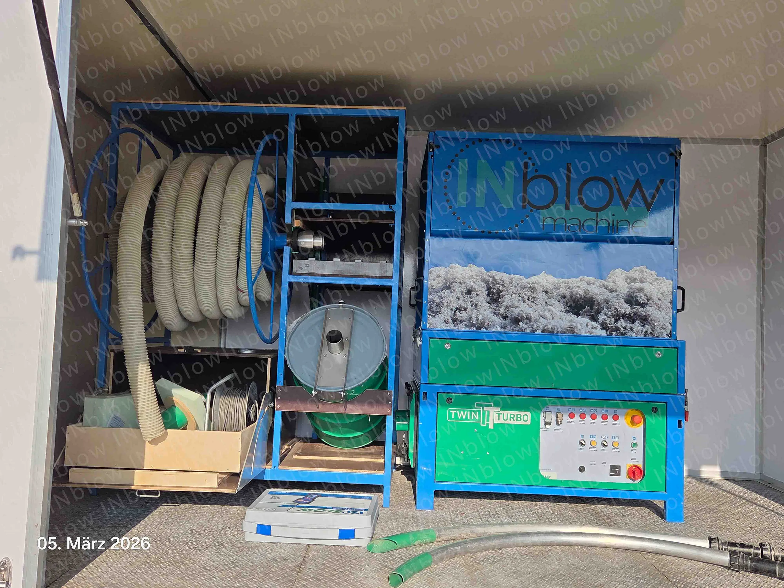 Inside ist eine ISOblow Profi Twin Turbo - ein Möbel mit Schlauchwagen, ein Absaugfass - eine Einblasdüse und zwei Einblaslanzen.